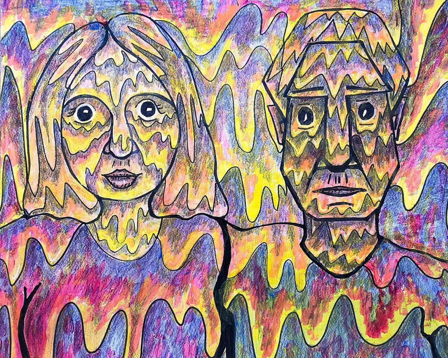 Voice of Happiness, graphite ink and acrylic  paint on watercolor paper, 16in by 20in, 2023